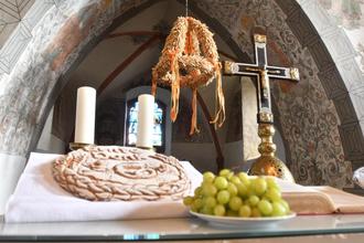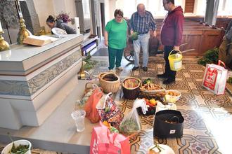 während in der Kirche die Erntegaben in Empfang genommen wurden