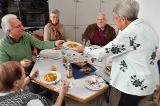 und im benachbarten Gemeindehaus traf sich die Gemeinde zum gemeinsamen Mittagessen
