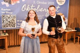 Emily Pausner ist die neue Dirndlkönigin und Linus Meurer heißt der neue Lederhosenkönig ©Fotos: Thomas Wißner