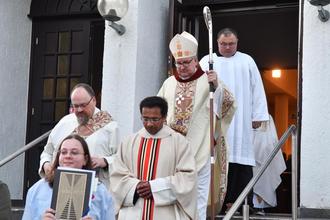 Mit am Altar waren Pfarrvikar Linto Thekkekunnel Paily und die beiden Diakone Wolfgang Peis und Diakon Goran Andrijevic. "Ich bin der gute Hirte... Ich kenne die Meinen und die Meinen kennen mich... Niemand geht verloren..."