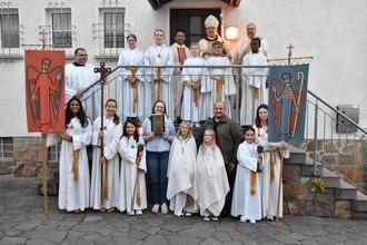 Zu dieser Stelle aus dem Evangelium des Johannes erklärte Bischof Kohlgraf allen Anwesenden, besonders den Kindern, sein Bischofskreuz und den Hirtenstab