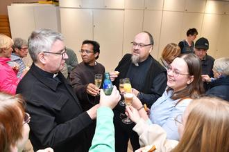und beim anschließendem Empfang im Pfarrgemeidnesaal ein "Prosit auf Linden" ©Fotos: Thomas Wißner