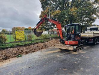 Ein Stromanschluß für den städtischen Waldkindergarten „Wurzelkinder“ wird zur Zeit im Mühlberg von der Waldstraße entlang am TSG-Sportheim und Sportplatz verlegt.