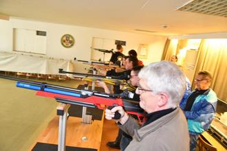 im Vorraum des Schießstands die Ergebnisse der Schützen verfolgt und vor allem bei den Herren und gemischten Mannschaften die Platzierungen aus der Vorrunde nochmals durcheinandergewirbelt werden