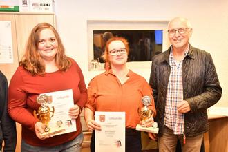 Bei den Damen fehlte die neue Stadtmeisterin Conny Kanse so dass (von rechts) Erster Stadtrat Harald Liebermann, Anna Langwald zum 3. und Carina Pötzl zum 2. Platz gratulierte