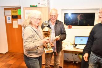 Bei den Damen-Mannschaften siegte der Dart-Club für den Martina Rau den Pookal entgegennahm