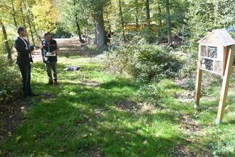 und zwar als Ausgleichsfläche für den an dieser Stelle noch aufzustellenden zweiten Bauwagen wie Bürgermeister Fabian Wedemann (links) und Revierförster Jörg Sennstock bei einem Ortstermin mitteilten.