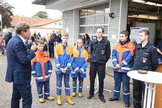 Bürgermeister Jörg König (linbks) gratulierte der Jugendfeuerwehr zum goldenen Jubiläum