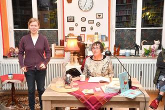 „Mit so vielen Besuchern hatten wir gar nicht gerechnet“, begrüßte Ida Weigand die Gäste in der StattBücherei zur Lesung mit Gertraud Barthel. „Eine Autorin aus dem Nachbarort, das hatten wir bisher aber auch noch nicht“, so Weigand. Barthel las aus "Geschichten vom Hund“, ihrem 2017 erschienenen autobiografischen Buch. Passend zur Geschichte, wo ein Mundharmonikakonzert eine wesentliche Rolle spielt, brachte zwischen den Textpassagen Brigitte Geist einige Melodien auf der Mundharmonika zu Gehör. Der Erzählband „Die Geschichte vom Hund“ (ISBN 978-3-96014-370-3) ist bei der edition winterwork erschienen und im Buchhandel erhältlich. Als „Zugabe“ las sie dann noch aus einem Krimi in dem sich die beiden Detektiv-Legenden Sherlock Holmes und Hercule Poirot begegneten.