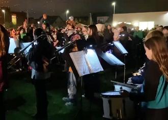 wo das Musikcorps der Freiwlligen Feuerwehr Großen-Linden aufspielte