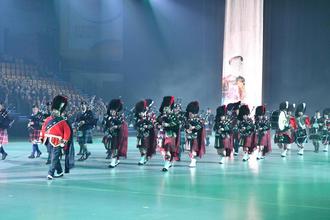 Massed Pipes & Drums, zusammengestellt aus den Clan Pipers Frankfurt (der ältesten Pipe Band Deutschlands), den Heidelberg District Pipes und Drums sowie den 58th Scottish Volenteers Iserlohn wartete mit Klassikern wie „Amazing Grace“ und „Highland Cathedral“ auf