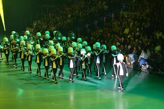 Auf einer Sänfte in die Arena getragen wurde Tambour-Maître Justin Heemskerk, dessen Marching Band Kunst & Genoegen aus Leiden unter dem Motto „The Show must go on“ aufspielte.