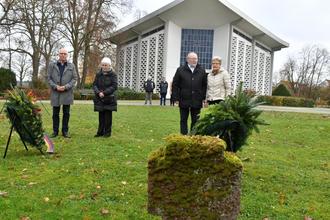 auf dem Friedhof Liebermann und Braun sowie für den VdK Vorsitzende Cornelia Weiß und ihr Stellvertreter Horst Weitze nieder. ©Fotos: Thomas Wißner