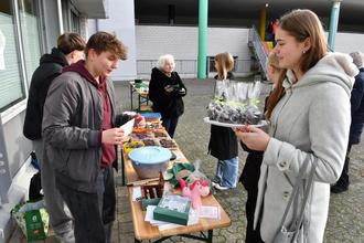 Vor allem der Schokoladenstand der Klasse 10eG auf dem Schulhof war dicht umlagert – hier gab es sogar Dubai-Schokolade ©Fotos: Thomas Wißner