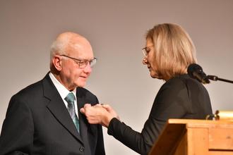 ganz besonders die Schirmherrin, Landrätin Anita Schneider (rechts), die als besonderes Geschenk dem Vorsitzenden des Jubiläumsvereins, Herbert Seipp (links) den Ehrenbrief des Landes Hessen überreichte