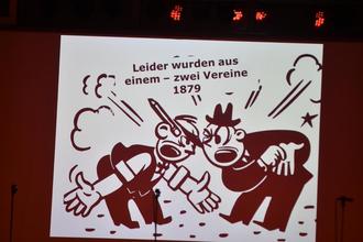 28 Bilder dabei, mit denen auch schon mal mit einem Augenzwinkern auf die Geschichte der Harmonie geblickt wurde