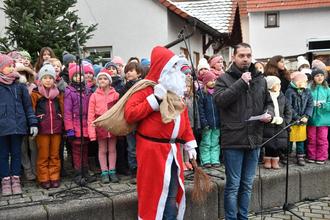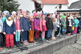 „Nikolaus, Nikolaus“ zur Melodie von „Jingle bells“ stimmte zur Eröffnung der Schulchor der Wiesengrundschule Leihgestern an