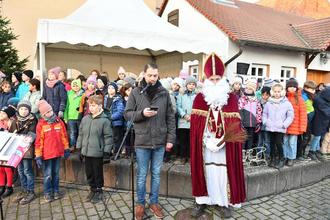 Bürgermeister Fabian Wedemann (links) eröffnete im Beisein des in ein neues Bischofs-(Nikolaus)Gewand gekleideten Nikolaus