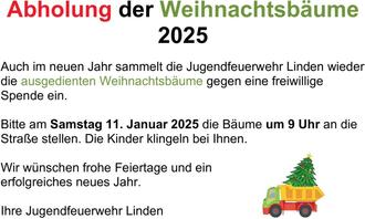 Bitte am Samstag 11. Januar 2025 die Bäume um 9 Uhr an die