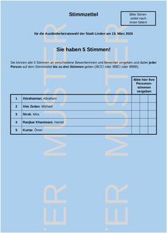 Musterstimmzettel Ausländerbeiratswahl Linden