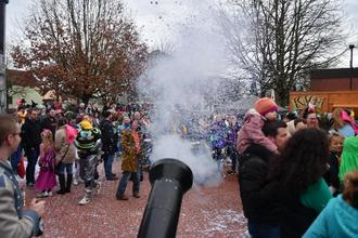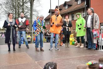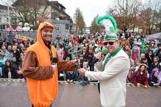 Da freuten sich die Narren sehr, doch dann kam der Bürgermeister als Maus daher. Gab es im vergangenen Jahr beim Sturm erst gar kein Stadtoberhaupt, so versuchte sich Bürgermeister Fabian Wedemann in diesem Jahr als listige Maus, doch dies reichte nicht aus, mußte er mit seiner Magistrats- und Verwaltungstruppe schnell kapitulieren. Bei den drei Spielen hatten die Großkopferten aus dem Rathaus gegen die Narrenschar keine Chance. Die Narren führten ihre Tanzgruppen und Stempelakrobaten ins Gefecht, so dass bereits das erste Spiel, das Ausstellen eines Fastnachtspaßes seitens der Verwaltung verloren ging.