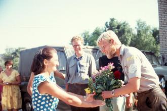 In seinem Vortrag „Die Russlandfahrt – 1000 Kilometer – Eine Begegnung mit Geschichte – der Anfang von Versöhnung“ nahm Harmut Schau die gut 60 Zuhörer in der Christusgemeinde mit auf eine Wanderung von der polnisch-weißrussischen Grenze bis nach Moskau. Vor 35 Jahren unternahm Schau mit neun Pfadfindern aus allen Teilen Deutschlands die dreimonatige Reise. Die Pfadfinder starteten am 22.06.1991, dem 50. Jahrestag des deutschen Überfalls auf die Sowjetunion und wanderten nach einer Zugfahrt von Berlin über Warschau nach Brest von Brest über Minsk und Smolensk bis nach Moskau auf den Spuren ihrer im Krieg gefallenen Großväter, als Versöhnungstour. Unterwegs begegneten sie ehemaligen Soldaten, Umweltaktivisten und besuchten Gedenkstätten wie Chatyn und Katyn. Mit 80 Fotos auf 30 Bildtafeln berichtete Schau über den Fußmarsch und wie die Gruppe den Putschversuch gegen Michail Gorbatschow vom 19. bis 21.08.1991 erlebte. Der als August-Putsch bekannte Umsturzversuch beschleunigte letztendlich den Zerfall der Sowjetunion dramatisch. Noch heute treffen sich die „Russlandfahrer“ jährlich, wobei zwei bereits verstorben sind. Die Wanderung führte seinerzeit zur Gründung eines Fördervereins und zu langfristigen Freundschaften.