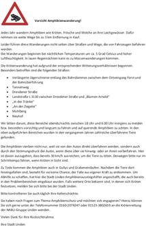 Wir bitten darum, diese Bereiche abends/nachts zwischen 18 Uhr und 6.00 Uhr morgens zu meiden bzw. besonders vorsichtig und langsam zu fahren und auf querende Amphibien zu achten. In den oben aufgeführten Bereichen wurden in den vergangenen Jahren zahlreiche überfahrene Tiere gefunden.