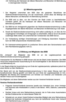 - Der BSB wird zu allen, von den Gremien der Stadt Linden zu beschließenden Vorhaben gehört, die die Interessen der älteren Menschen und Menschen mit Behinderung betreffen.
