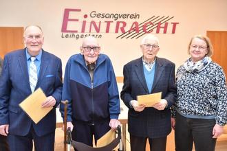 Die scheidende Cornelia Grosse (von rechts) dankte Karl bender für 75 Jahre sowei Reinhard Pauli und Gerhard Damm für 70 Jahre Mitgliedschaft