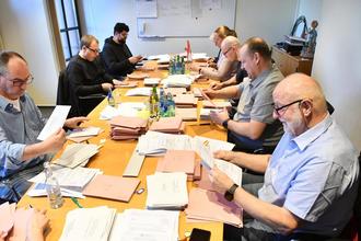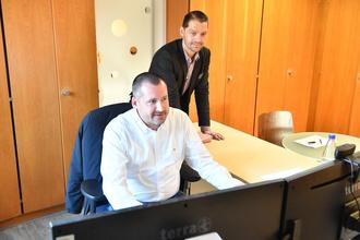 Im Rathaus liefen bei Wahlleiter Fabian Wedemann udn seinem Stellvertreter Andreas Reuter (sitzend) die Wahlergebnisse zusammen