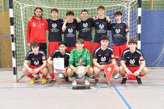 Futsal-Regionalmeister und damit für das Hessenfinale am morgigen Samstag in der Kar-Zeiß-Sporthalle in Lang-Göns qualifiziert sind die A-Junioren der JSG Leihgestern/FC TuBa. Am vergangenen Samstag sicherte sich die Mannschaft von Trainer Lukas Würtele den Sieg beim Regionalentscheid Gießen/Marburg in der Sporthalle in Wieseck. Auf Kreisebene noch der gastgebenden TSG Wieseck unterlegen, drehte die Mannschaft nun den Spieß um und siegte im Finale gegen die Gießener Vorstädter mit 2:0. Mit einer 1:0-Niederlage gegen JFV Ohmtal-Homberg ins Turnier gestartet, steigerten sich die Jungs dann deutlich und zogen mit zwei souveränen Siegen gegen FC Burgsolms (4:0) und JSG Obere Salzböde (5:0) letztendlich aufgrund der besseren Tordifferenz mit 8 Toren gegenüber der JSG Obere Salzböde (-3 Tore) bei Punktgleichheit ins Finale ein. In dieses hatte die TSG Wieseck einen glatten Durchmarsch mit drei Siegen gegen Sportfreunde/BG Marburg (8:0), FC Ederbergland (2:0) und JFV FC Aar (7:2) hingelegt. So kam es zur Neuauflage des Kreisfinals – mit dem besseren Ausgang für die Gäste. Bereits nach zwei Minuten hieß es 1:0 durch Samuel Marck und dann zwei Minuten später landete Yannick Emmer bereits den 2:0-Treffer. 30 Sekunden vor der Schlusssirene sorgte Simon Kalberlah für den Anschlusstreffer und für turbulente letzte Sekunden. Letztendlich siegte die JSG Leihgestern/FC TuBa und sicherte sich damit die Fahrkarte zum Hessenfinale.