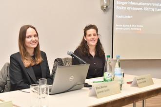 die Referentinnen (v. l.) Elisa Bender und Kerstin Büche von der von der Stadt beauftragten Firma Geomer die Starkregenanalyse vorstellten.