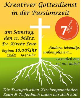 | 18.00 Uhr | Gottesdienst in Leun - gemeinsam für Leun und Tiefenbach |