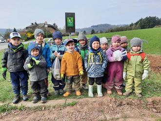 Die Wald- und Wiesengruppe „Wiesenhüpfer" der Rappelkiste hat sich in der Kalenderwoche 13 aktiv am Umwelttag beteiligt. Mit großem Engagement machten sich die Kinder gemeinsam auf den Weg, um rund um ihren Platz, sowie in der näheren Umgebung Müll zu sammeln.