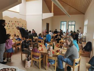 Zur Begrüßung der Väter überraschten die Kinder mit einigen lang eingeübten Osterliedern. Danach wurde das lecker gefüllte Buffet gestürmt.