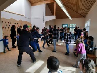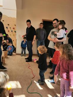 Zum Abschluss des Vormittags traten dann Väter und Kinder zum gemeinsamen Wettstreit beim Eierlauf und Tauziehen an.