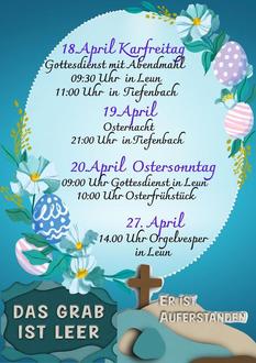 | 09.30 Uhr | Gottesdienst mit Abendmahl in Leun |