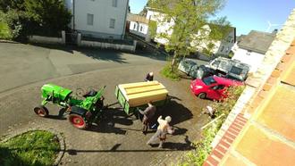 Am zweiten Termin packten schließlich sieben Helfer gemeinsam an: Alle Bauteile aus dem ersten Stock wurden auf einen Traktoranhänger verladen und ins DGH zur Zwischenlagerung gebracht. Dank der gemeinsamen Arbeit konnte die Rückbauaktion erfolgreich abgeschlossen werden.