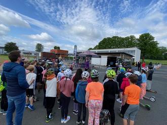 Dank der finanziellen Unterstützung durch den ADAC gelang es der Lahn-Ulm-Schule das RollerKIDS Mobil, samt den ausgebildeten Trainern Lisa und Steven, nach Biskirchen zu lotsen.