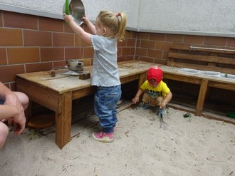 Ein Highlight war die neue Matschküche und „Feuerstelle“. Im Vorfeld haben sich die Eltern am Wochenende getroffen und das Außengelände von jeglichem Unkraut befreit und die besagten Spielsachen aufgebaut. Hierfür vielen lieben Dank.