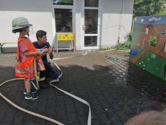Mit diesem Lied begrüßten die Kinder der Kita Zwergenland ihre Familien zum diesjährigen Sommerfest, das unter dem Motto „Feuerwehr“ stand.