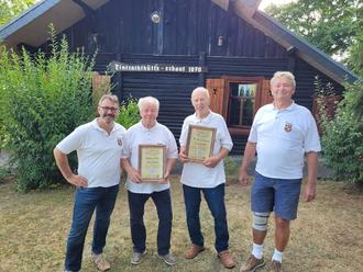 Wolfgang Klotz als Gründungsmitglied und Manfred Langnau der über 52 Jahre dem Verein angehört, wurden vom 1. Vorsitzenden Matthias Troß und seinen Vereinskameraden im Rahmen einer Grillfeier zu Ehrenmitgliedern ernannt. Beide haben in ihrer langjährigen Mitgliedschaft dem Verein immer die Treue gehalten und sich mit ihrem Engagement und viel Einsatz in verschiedenen Positionen um den Verein verdient gemacht.