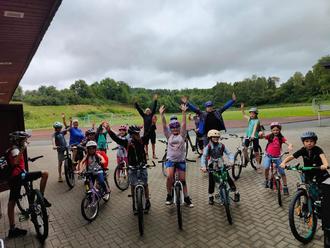 War man in Leun am Treffpunkt noch zuversichtlich die Tour planmäßig durchführen zu können, geriet der Gedanke in Stockhausen am Treffpunkt, durch den erneut einsetzenden Regen, schon wieder ins Wanken. Am Treffpunkt in Biskirchen fiel dann die Entscheidung nicht zur Ulmtalsperre zu fahren, sondern in Leun am Sportplatz mit dem Sportlerheim erst einmal im Trockenen den Regen abzuwarten. So wurden die 14 Teilnehmer/innen mit ihren Fahrrädern nach Leun gebracht, um sich dort auf dem Sportplatz mit allerlei Spielen die Zeit zu vertreiben. Nach einer Stärkung mit gegrillten Hamburgern sollte noch eine kleine Runde Richtung Niederbiel gefahren werden, bevor es auf den Heimweg Richtung Stockhausen und Biskirchen geht. Doch wieder begann es zu regnen und so gab es nur eine kleine Fahrradtour von Leun nach Stockhausen und Biskirchen.