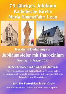 | 18.00 Uhr | Eucharistiefeier mit Patrozinium, Begleitung des Chores "Magnificat", Leun (Kirche Maria Himmelfahrt) |