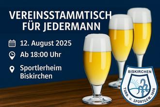 Wir laden zu unserem ersten Vereinsstammtisch ins Sportlerheim ein
