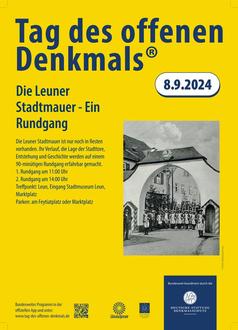 Die Leuner Stadtmauer ist nur noch in Resten vorhanden. Ihr Verlauf, die Lage der Stadttore, Entstehung und Geschichte werden auf einem Spaziergang erfahrbar gemacht. Dieser endet an der Leuner Mühle, Obere Bachstraße 40, einem weiteren Highlight am Tag des Denkmals.