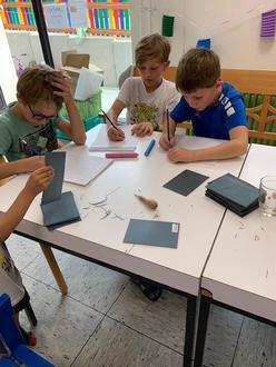 Am 7., 8. und 9. August fand als weiteres Ferienangebot des Familienzentrums Leun die Veranstaltung statt für Kinder zum Thema "Geschichten erfinden - Linolschnitte dazu herstellen".