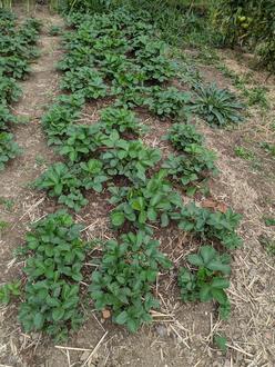 Ist es im September recht trocken, sollten wir die Erdbeeren gut mit Wasser versorgen. Dann bilden sie zahlreiche neue Blütenanlagen für das nächste Jahr. Vorher die alten Blätter abschneiden und mäßig düngen. Im Bild ist bereits der Neuaustrieb zu sehen.