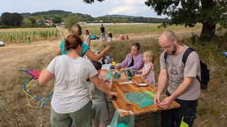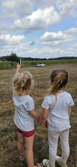 Eltern und Kinder konnten vor Ort ihre Drachen aus Mülltüten basteln. Aufgrund der Leichtbauweise konnten diese, bei sommerlichen Temperaturen und einer leichten Brise, zur großen Begeisterung aller, fliegen.