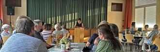 In seiner Begrüßung unterstrich Ralf Boch den Schwerpunkt des Abends, zu dem rund 30 Gemeindemitglieder, darunter auch Superintendent Pfr. Dr. H. Sitzler, am 30. August ins Gemeindehaus gekommen waren: „Es geht heute darum, hier Gemeinschaft zu erleben, das heißt, miteinander zu reden, miteinander zu essen…“ In dem anschließenden geistlichen Impuls von Katja Hartmann ging es um die Frage, wie wir als Christinnen und Christen unterwegs sein dürfen, nämlich mit leichtem Gepäck, frei von vielen Dingen, die uns mehr Last als Erleichterung verschaffen. Nach einem Gebet berichtete Anette Boch aus dem Pfarrbüro, u. a. von der Vertretung für die Kasualien (z. B. Taufen, Beerdigungen). Außerdem gab sie einen kurzen Rückblick auf die Resonanz zum Kirchenkaffee, welches im Anschluss an bestimmte Gottesdienste am Ausgang der Kirche angeboten und sehr gut angenommen wird. Ralf Boch informierte anschließend über den Stand zur Pfarrstellenbesetzung: Die Stelle ist ausgeschrieben, die Veröffentlichung im Amtsblatt erfolgt in der nächsten Ausgabe. Ingrid Hofmann und Irmi Klein stellten die Gruppe „Bible Art Journaling“ vor, an der aktuell etwa sechs bis acht Gemeindeglieder teilnehmen. Wie in allen Gemeindegruppen sind weitere Gäste herzlich dazu eingeladen. Für den Seniorenkreis gab Gertrud Budy einen Überblick. Jeweils 20 bis 25 Gemeindeglieder treffen sich an jedem 2. Dienstag im Monat zu einem bunten Programm mit Gesang und Kaffeetrinken. Etwa 10 Personen werden von den vier Mitarbeiterinnen und Mitarbeitern dieses Kreises in Pflegeheimen besucht. Im Anschluss daran wurde kräftig zugegriffen, bei Kaltgetränken, Fleischkäse und anderen Leckereien. Nicht nur deshalb lohnt es sich, das nächste Mal dabei zu sein.